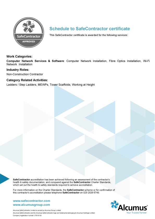 SafeContractor is one of the leading health and safety assessment schemes in the UK and, with this accreditation, we can assure our customers of our health and safety competency.