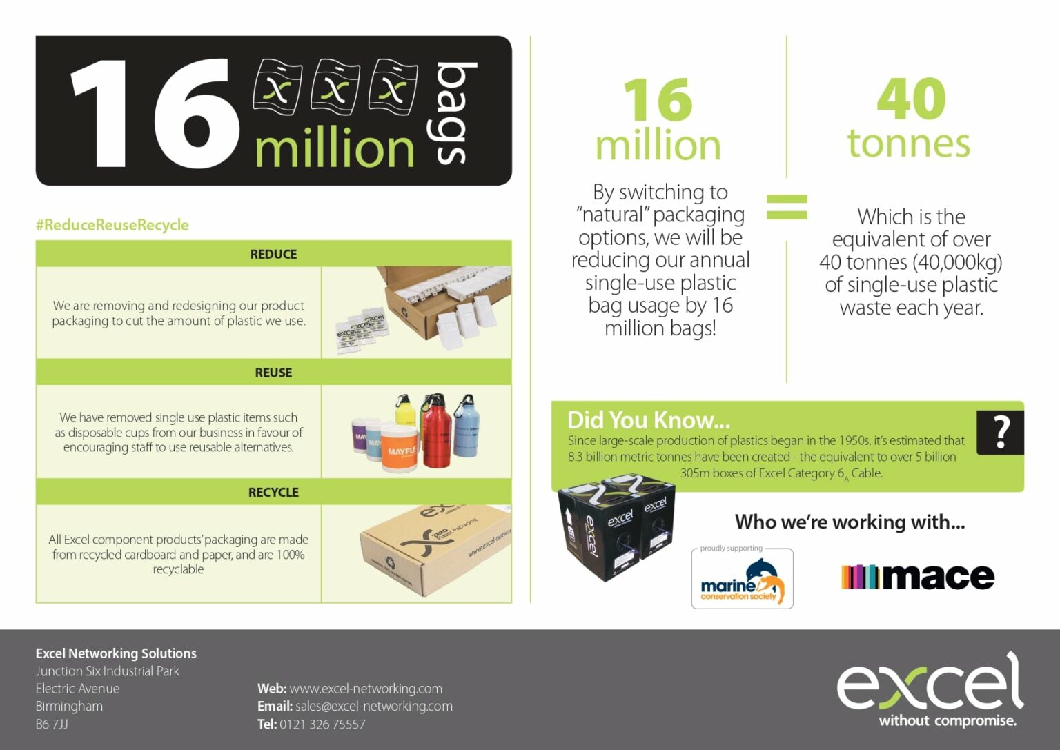 Excellent news from Excel Networking who have announced the start of their journey to being Plastic Free & are removing all single use plastic from the majority of their packaging.